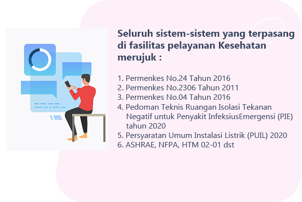 Inspeksi Sarana Prasarana Fasilitas Pelayanan Kesehatan (Fasyankes) meliputi bidang utama : Inspeksi Sistem Kelistrikan Medik, Inspeksi Sistem Gas Medik dan Vakum Medik, dan Inspeksi Sistem Tata Udara.