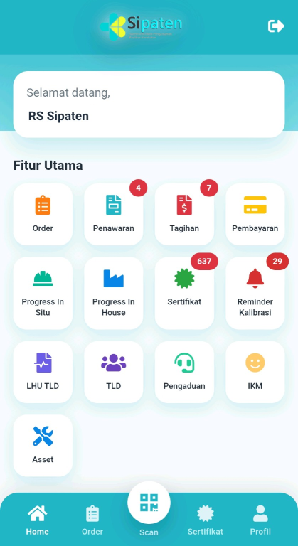Melalui aplikasi ini, rumah sakit, fasilitas kesehatan, maupun pengguna layanan dapat memantau proses layanan, mengakses dokumen penting, serta memperoleh informasi terkait kalibrasi alat kesehatan secara real-time di mana saja dan kapan saja.